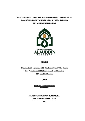Rachmadanti, Nurfajria Ayu (2023) Analisis Sitasi Terhadap Disertasi Konsentrasi Dakwah dan Komunikasi Tahun 2017-2021 di Pascasarjana UIN Alauddin Makassar. Undergraduate (S1) thesis, Universitas Islam Negeri Alauddin Makassar.
