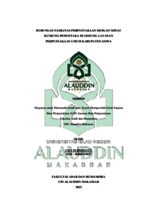 Nurmianty, Cici (2023) Hubungan Fasilitas Perpustakaan dengan Minat Kunjung Pemustaka di Gedung Layanan Perpustakaan Umum Kabupaten Gowa. Undergraduate (S1) thesis, Universitas Islam Negeri Alauddin Makassar.