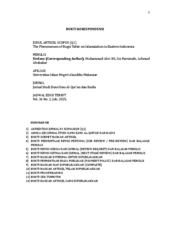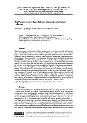 Firdaus, Firdaus and HS, Muhammad Alwi and Parninsih, Iin and Abubakar, Achmad (2025) The Phenomenon of Bugis Tafsir on Islamization in Eastern Indonesia. Jurnal Studi Ilmu-Ilmu al-Qur’an dan Hadis, 26 (2).