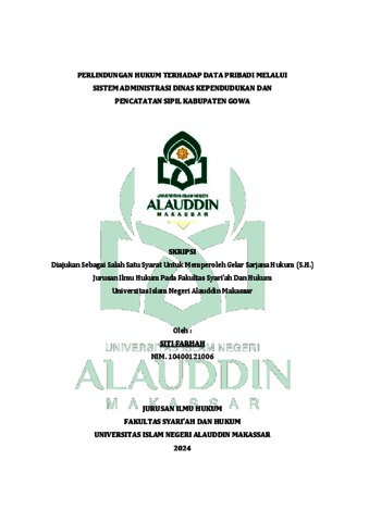 Farhah, Siti (2025) Perlindungan Hukum Terhadap Data Pribadi Melalui Sistem Administrasi Dinas Kependudukan dan Pencatatan Sipil Kabupaten Gowa. Undergraduate (S1) thesis, Universitas Islam Negeri Alauddin Makassar.