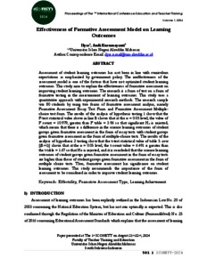 Ilyas, Ilyas and Kusumayanti, Andi (2025) Effectiveness of Formative Assessment Model on Learning Outcomes. In: Proceedings of The First International Conference on Education and Teacher Training.