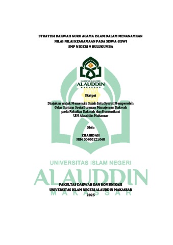 Zhahidah, Zhahidah (2025) Strategi Dakwah Guru Agama Islam dalam Menanamkan Nilai-Nilai Keagamaan pada Siswa-Siswi SMP Negeri 9 Bulukumba. Undergraduate (S1) thesis, Universitas Islam Negeri Alauddin Makassar.