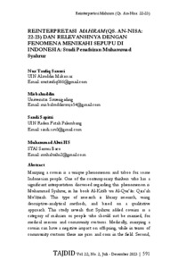 Sanusi, Nur Taufiq and Misbahuddin, Misbahuddin and HS, Muhammad Alwi (2023) Reinterpretasi Ma'hram (Q.S.An-Nisa/4 ayat 22-23) dan Relevansinya dengan Fenomena Menikahi Sepupu di Indonesia. Tajdid: Jurnal Ilmu Ushuluddin, 22 (2). ISSN p-ISSN: 2502-3063 ; e-ISSN: 2541-5018
