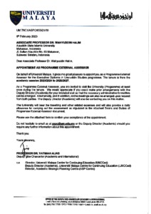 14 Bukti Kegiatan sbg Mitra Internasional Tri Dharma PT sbg Aksesor Ext. atau Konsultan Lembaga International.pdf Download (2MB) | Preview |