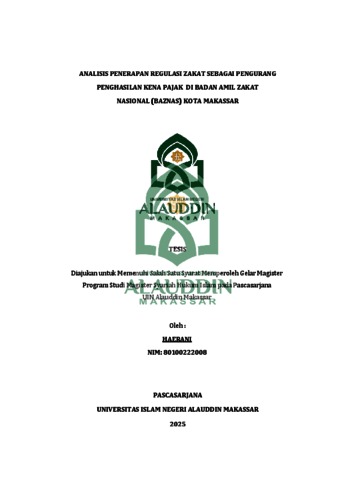 Haerani, Haerani (2025) Analisis Penerapan Regulasi Zakat sebagai Pengurang Penghasilan Kena Pajak di BAZNAS Kota Makassar. Magister (S2) thesis, Universitas Islam Negeri Alauddin Makassar.