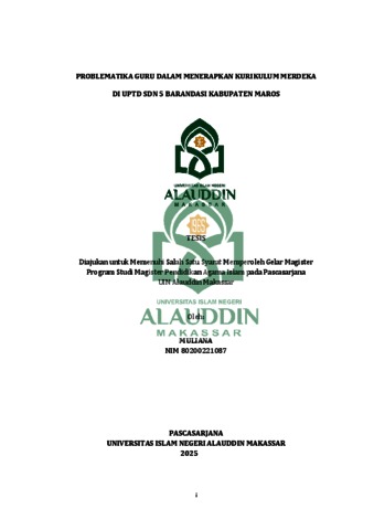 Muliana, Muliana (2025) Problematika Guru dalam Menerapkan Kurikulum Merdeka di UPTD SDN 5 Barandasi Kab. Maros. Magister (S2) thesis, Universitas Islam Negeri Alauddin Makassar.