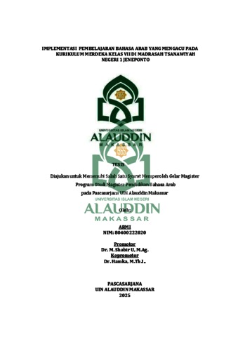Armi, Armi (2025) Implementasi Pembelajaran Bahasa Arab yang Mengacu pada Kurikulum Merdeka Kelas VII di Madrasah Tsanawiyah Negeri 1 Jeneponto. Magister (S2) thesis, Universitas Islam Negeri Alauddin Makassar.
