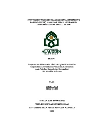 Salmah, Umu (2025) Strategi Komunikasi Organisasi Ikatan Mahasiswa Parado (IMPAR) Makassar dalam Membangun Interaksi Kepada Anggota Baru. Undergraduate (S1) thesis, Universitas Islam Negeri Alauddin Makassar.